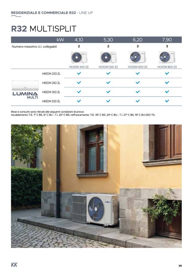 riscaldamento T.E. 7° C BS, 6° C BU - T.I. 20° C BS; raffrescamento: T.E. 35° C BS, 24° C BU - T.I. 27° C BS, 19° C BU (ISO T1).