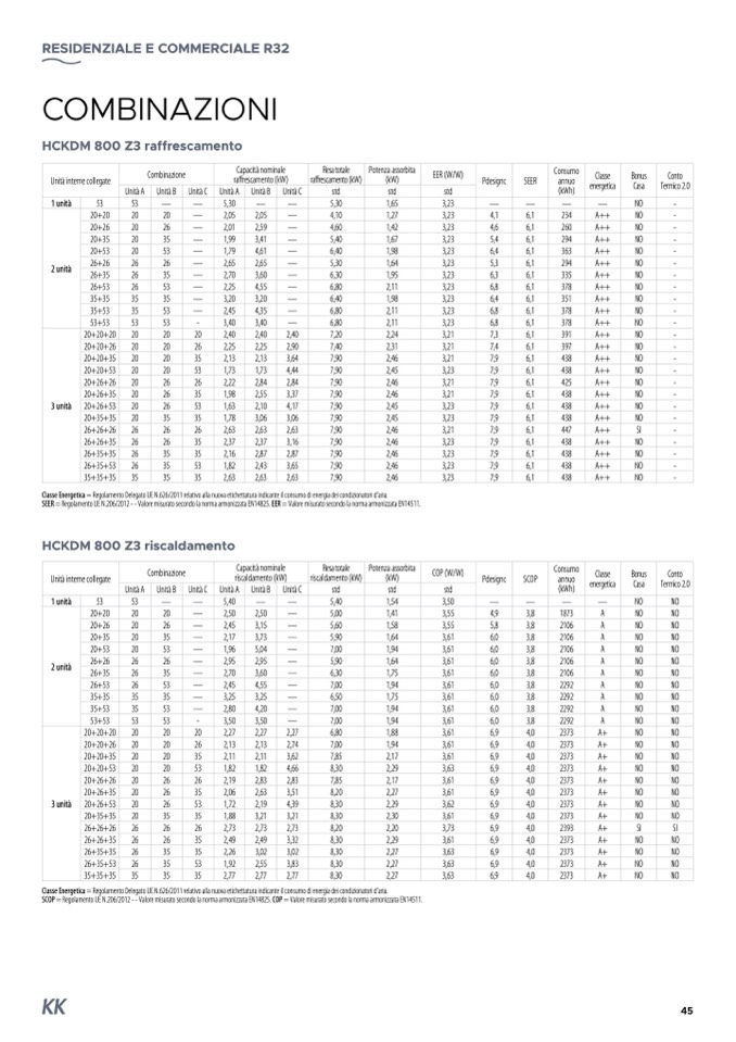 SEER = Regolamento UE N.206/2012 - - Valore misurato secondo la norma armonizzata EN14825. EER = Valore misurato secondo la norma armonizzata EN14511.