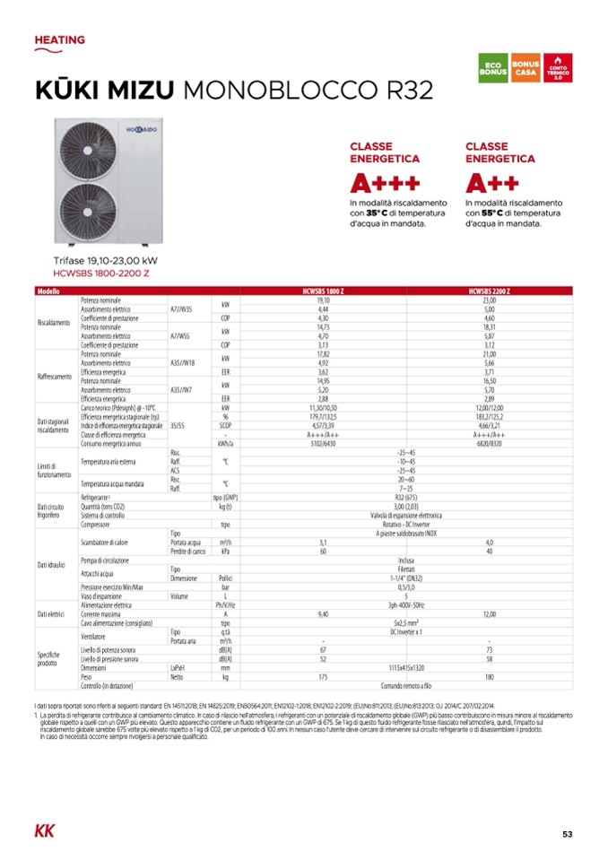 I dati sopra riportati sono riferiti ai seguenti standard: EN 14511:2018; EN 14825:2019; EN50564:2011; EN12102-1:2018; EN12102-2:2019; (EU)No:811:2013; (EU)No:813:2013; OJ 2014/C 207/02:2014.