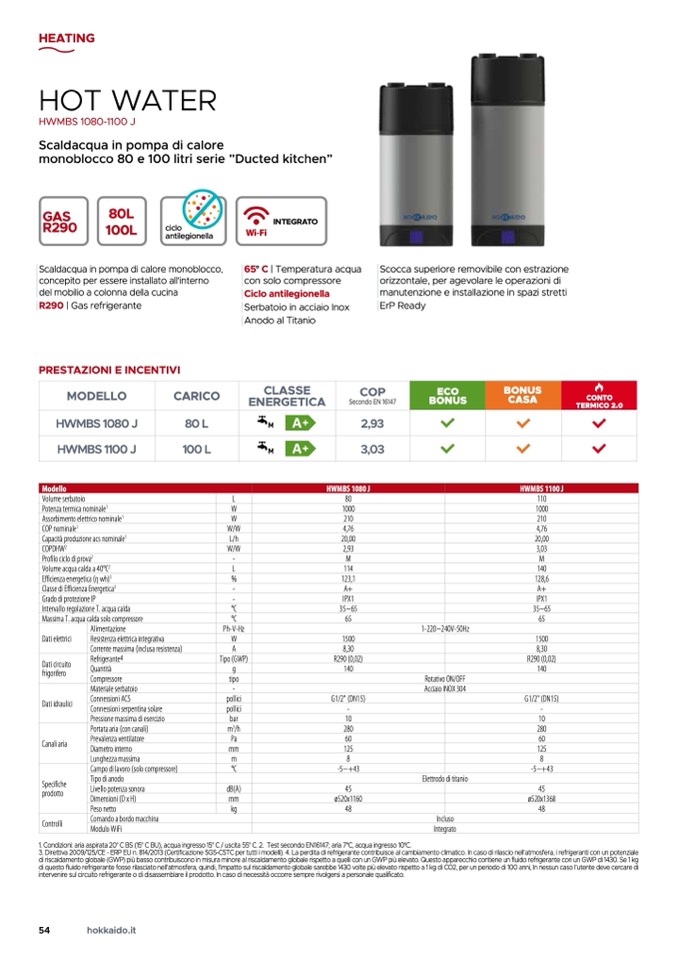 1.Condizioni:ariaaspirata20°CBS(15°CBU),acquaingresso15°C/uscita55°C.2. TestsecondoEN16147;aria7°C,acquaingresso10°C.