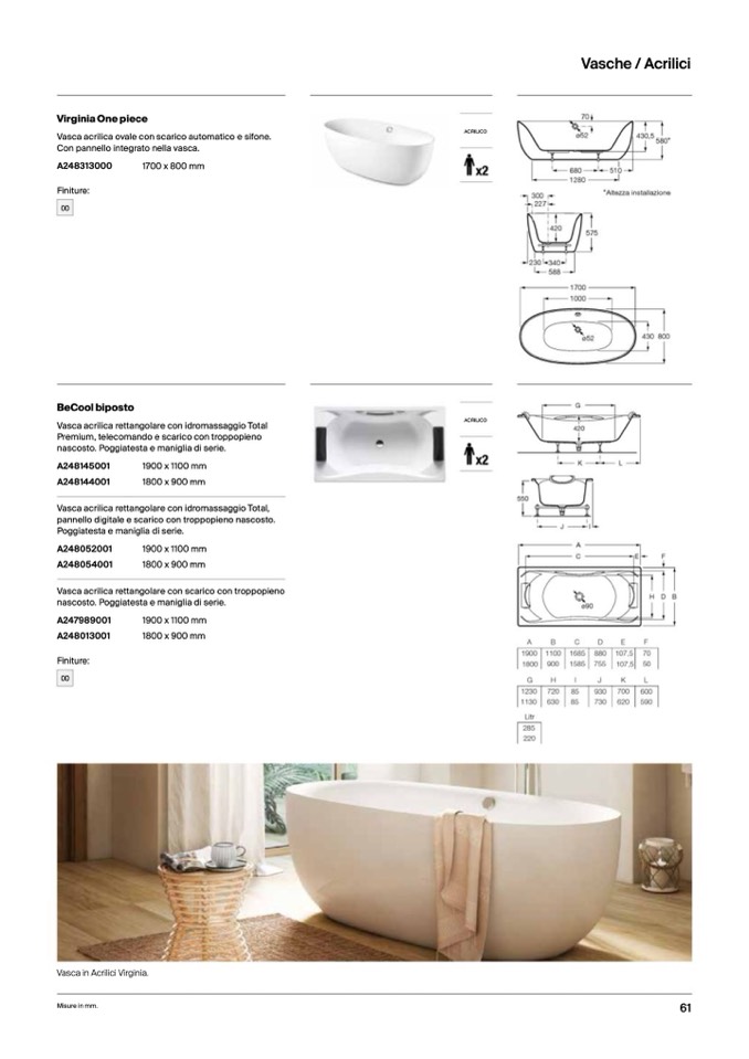 Vasca in Acrilici Virginia.