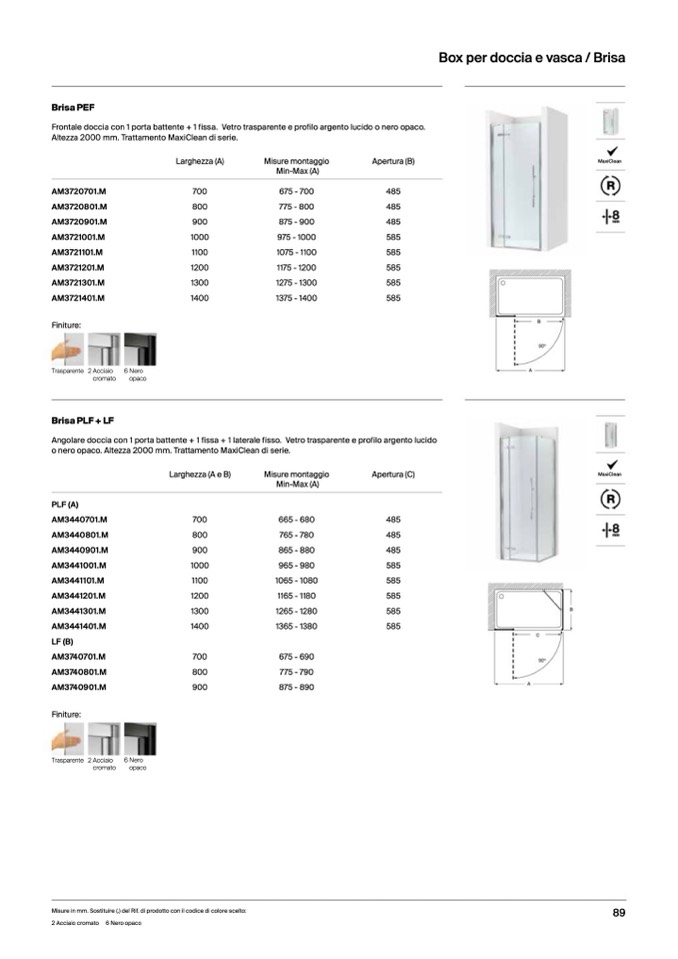 Misure in mm. Sostituire (.) del Rif. di prodotto con il codice di colore scelto: