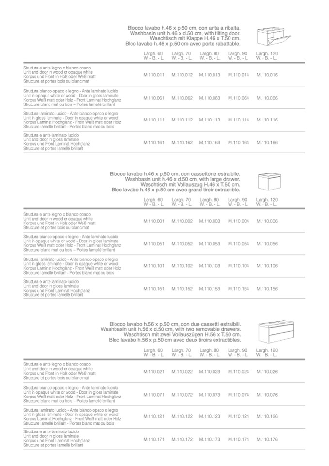 Blocco lavabo h.46 x p.50 cm, con anta a ribalta.