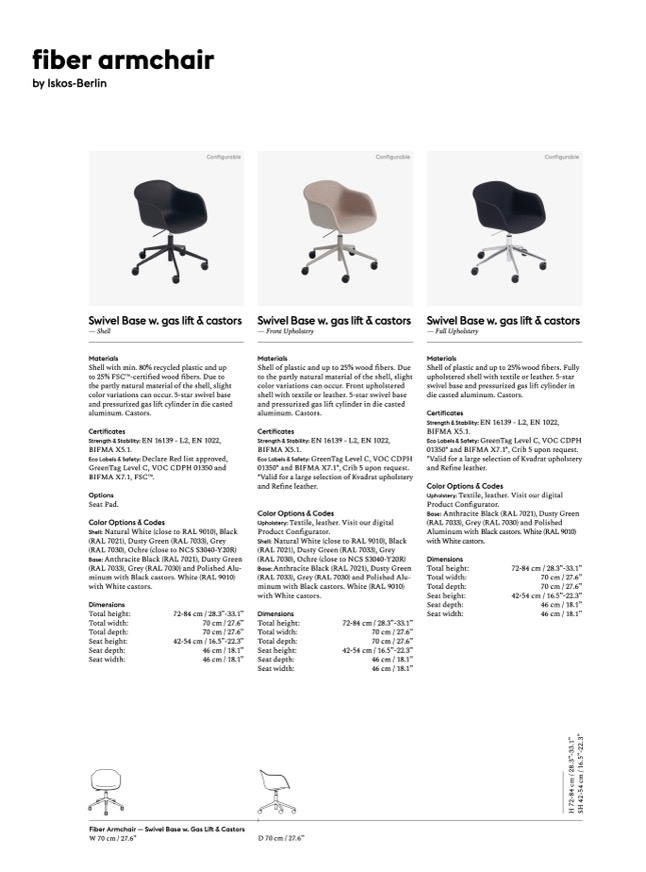 Fiber Armchair — Swivel Base w. Gas Lift & Castors
