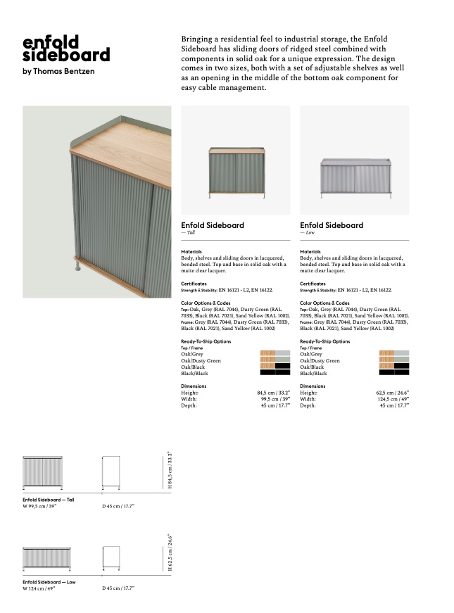 Top: Oak, Grey (RAL 7044), Dusty Green (RAL