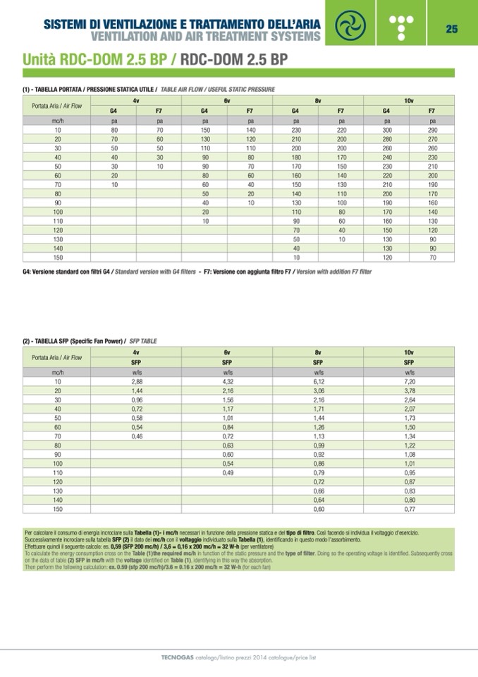 (2) - TABELLA SFP (Specific Fan Power) / SFP TABLE