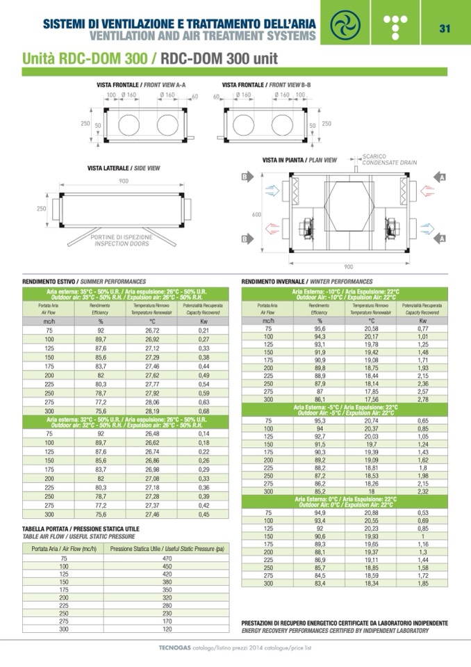 TABELLA PORTATA / PRESSIONE STATICA UTILE