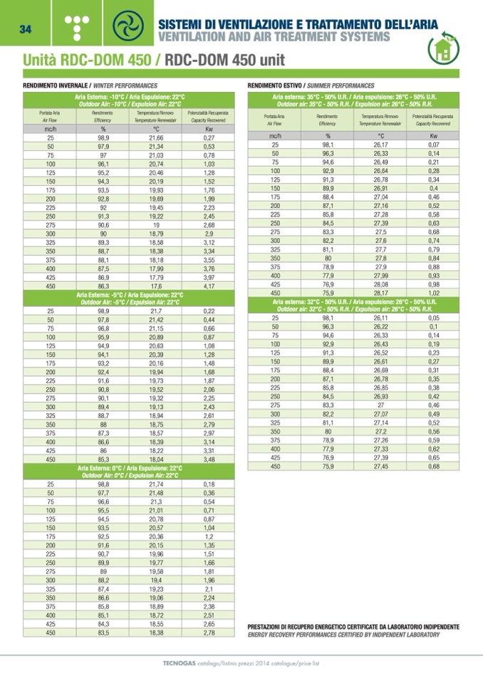 PRESTAZIONI DI RECUPERO ENERGETICO CERTIFICATE DA LABORATORIO INDIPENDENTE