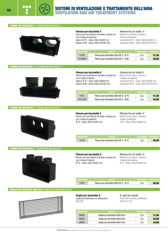 TECNOGAS catalogo/listino prezzi 2014 catalogue/price list