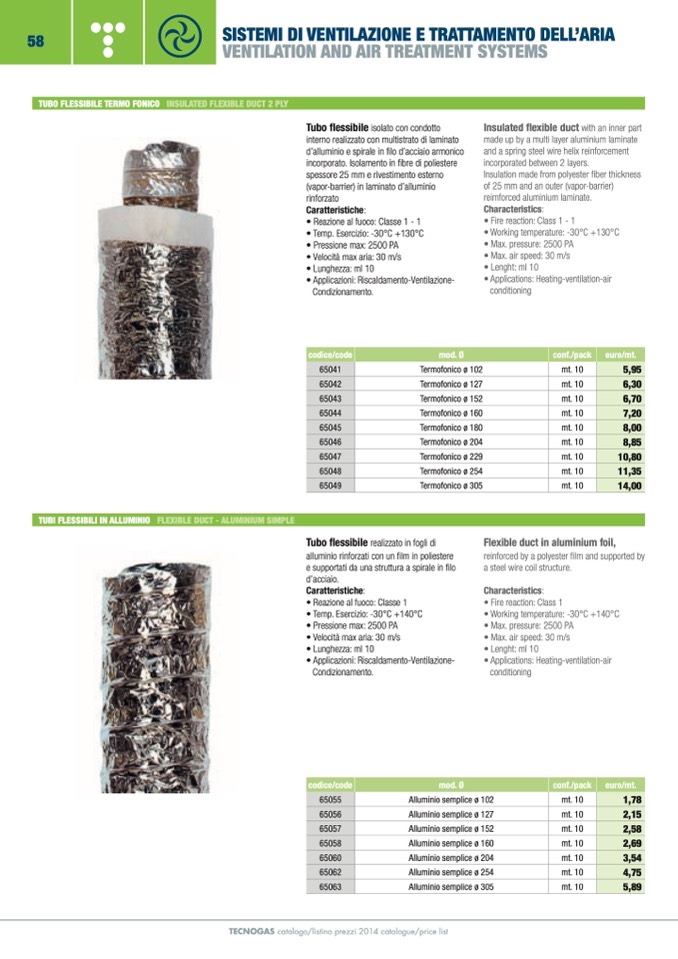 TECNOGAS catalogo/listino prezzi 2014 catalogue/price list