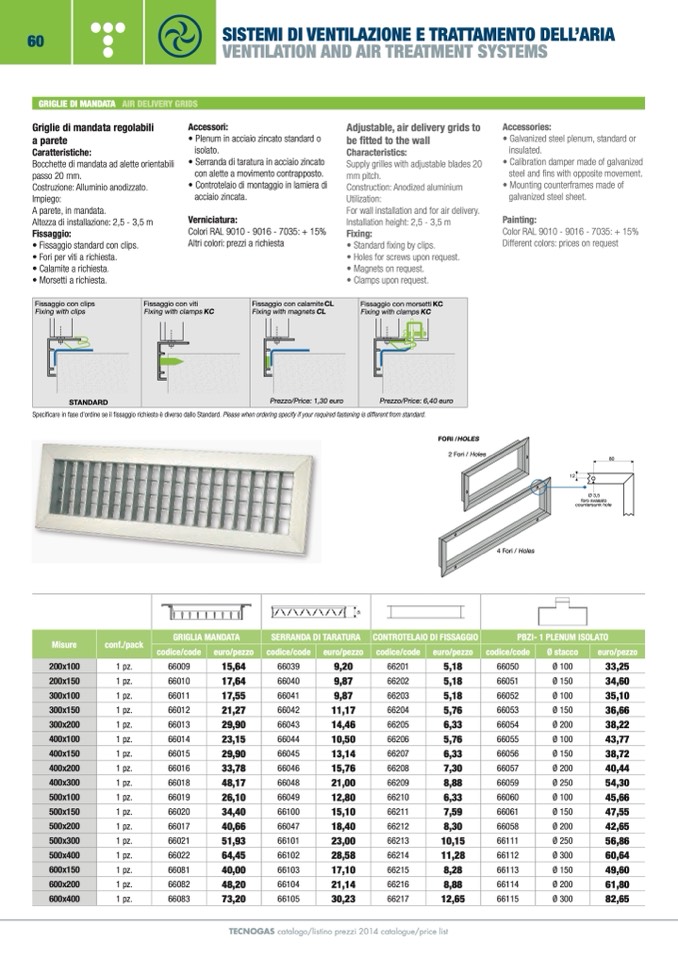 TECNOGAS catalogo/listino prezzi 2014 catalogue/price list