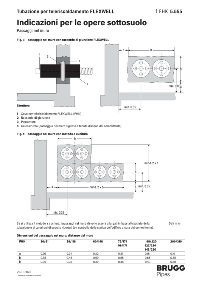 Se si utilizza il metodo a cucitura, i passaggi nel muro devono essere allargati in base al tracciato della