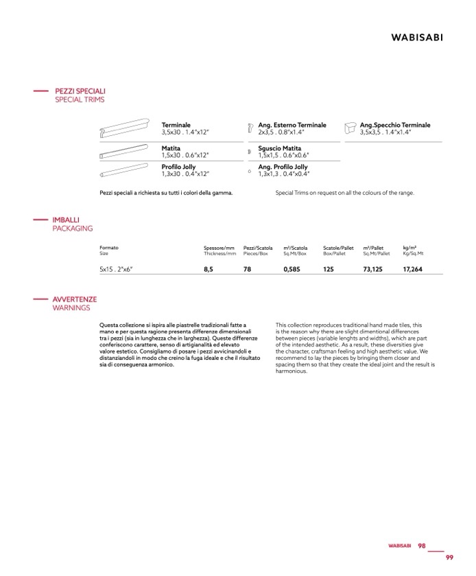 Pezzi speciali a richiesta su tutti i colori della gamma.