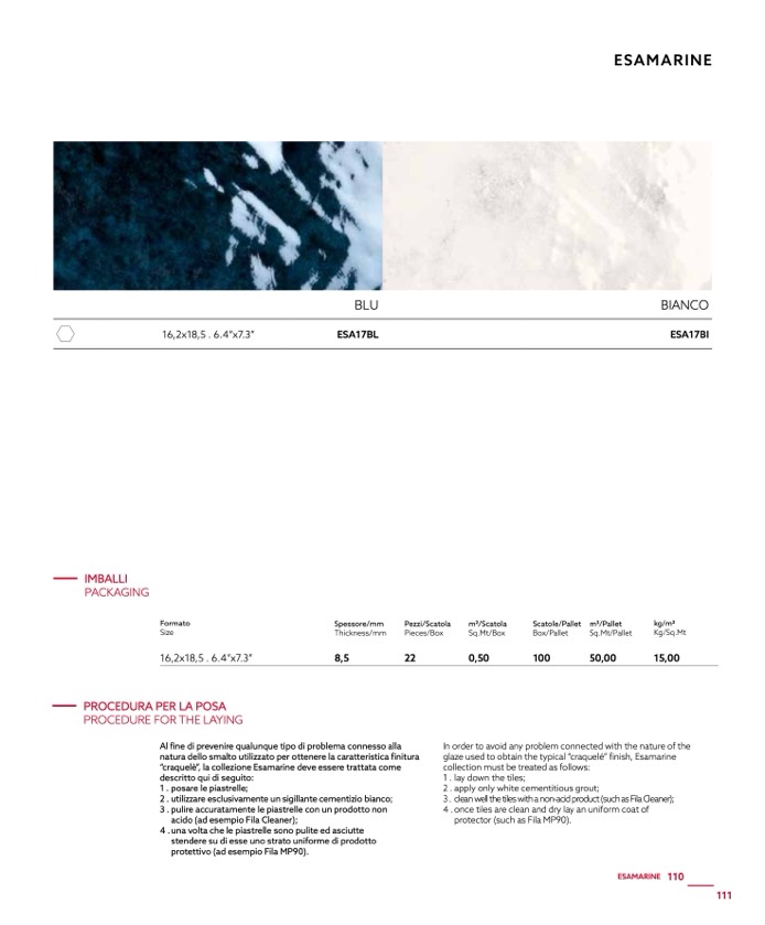 “craquelè”, la collezione Esamarine deve essere trattata come