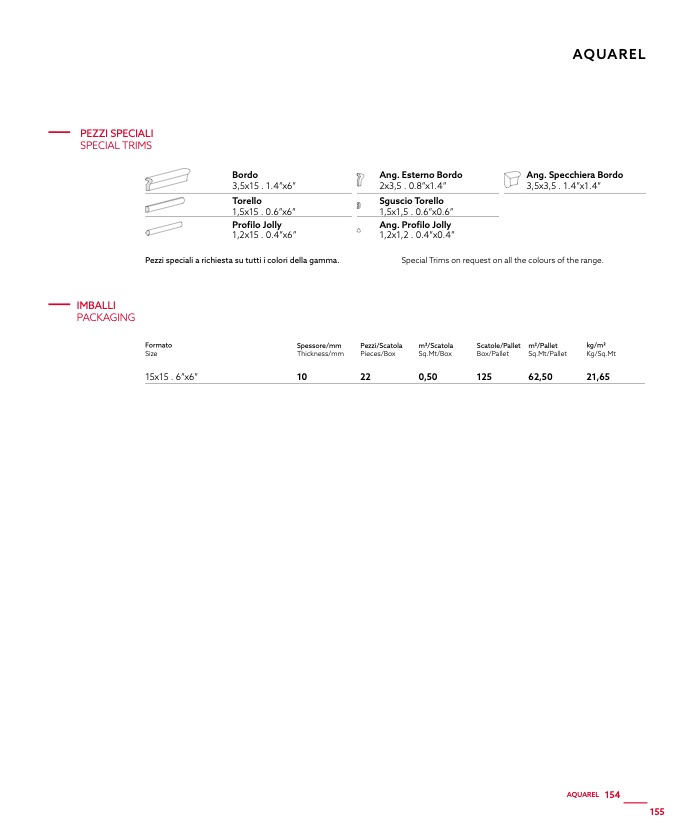 Pezzi speciali a richiesta su tutti i colori della gamma.