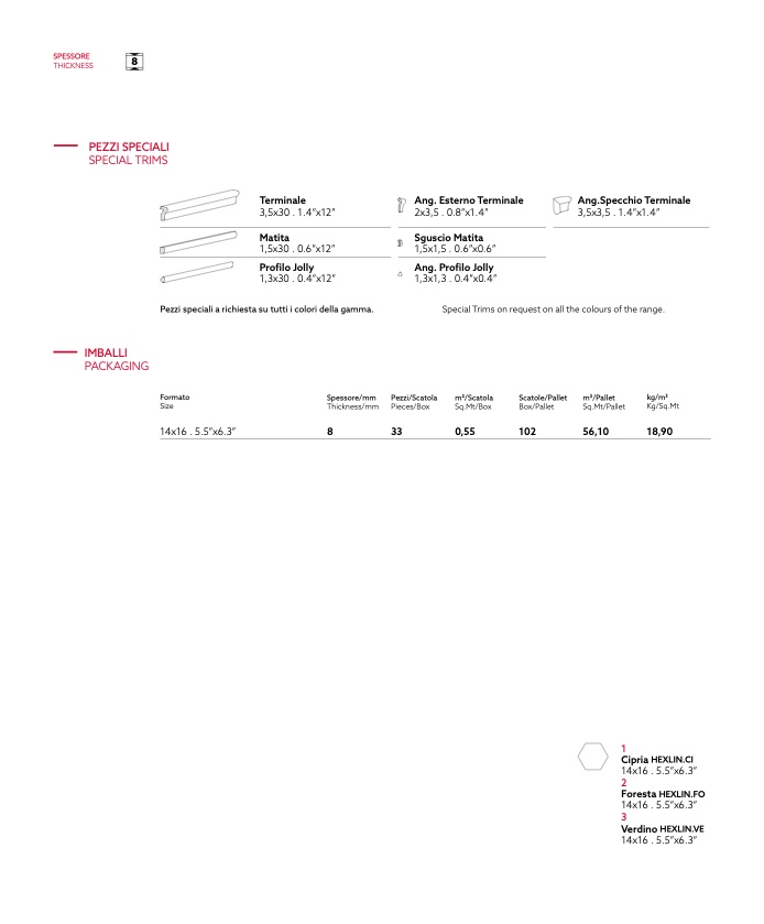 Pezzi speciali a richiesta su tutti i colori della gamma.
