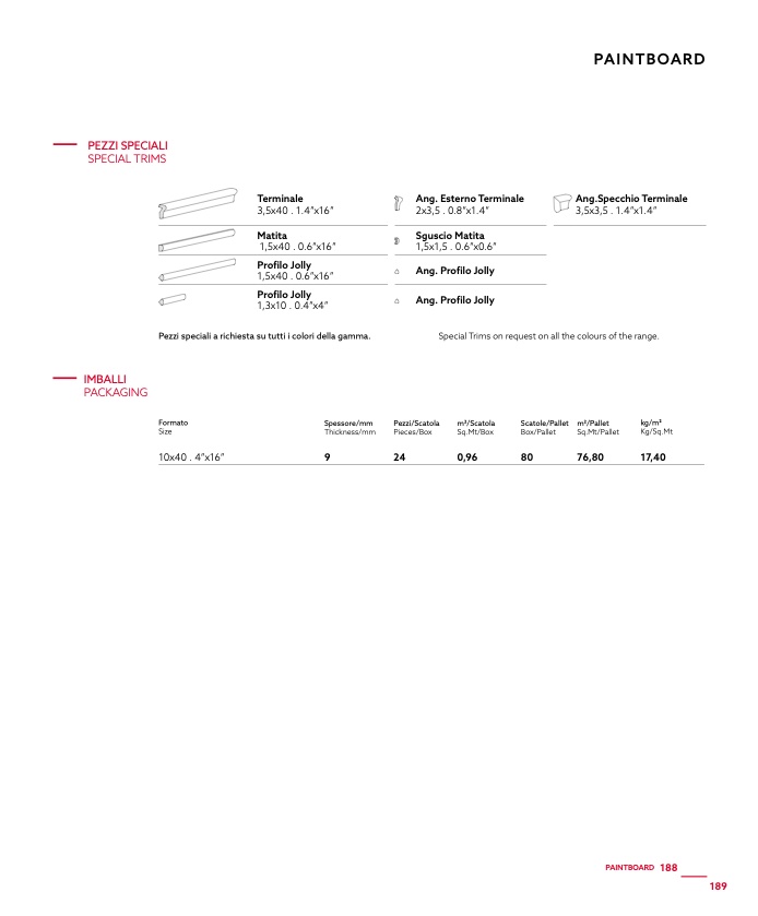 Pezzi speciali a richiesta su tutti i colori della gamma.