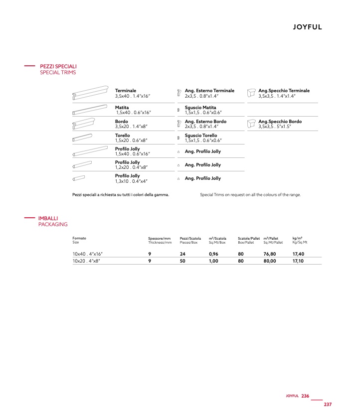 Pezzi speciali a richiesta su tutti i colori della gamma.