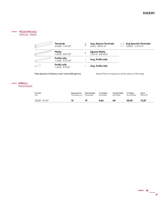 Pezzi speciali a richiesta su tutti i colori della gamma.