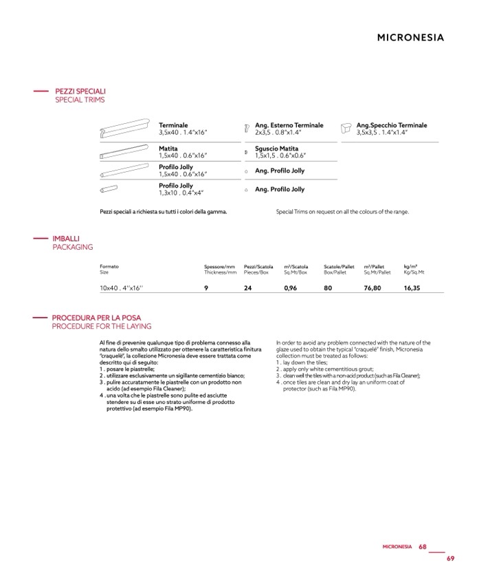 “craquelè”, la collezione Micronesia deve essere trattata come