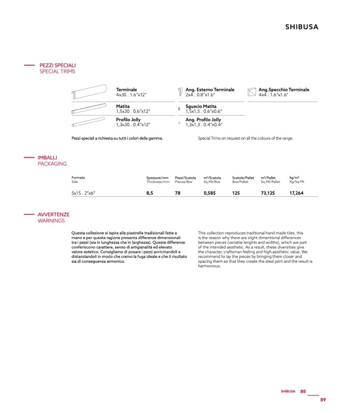 Pezzi speciali a richiesta su tutti i colori della gamma.