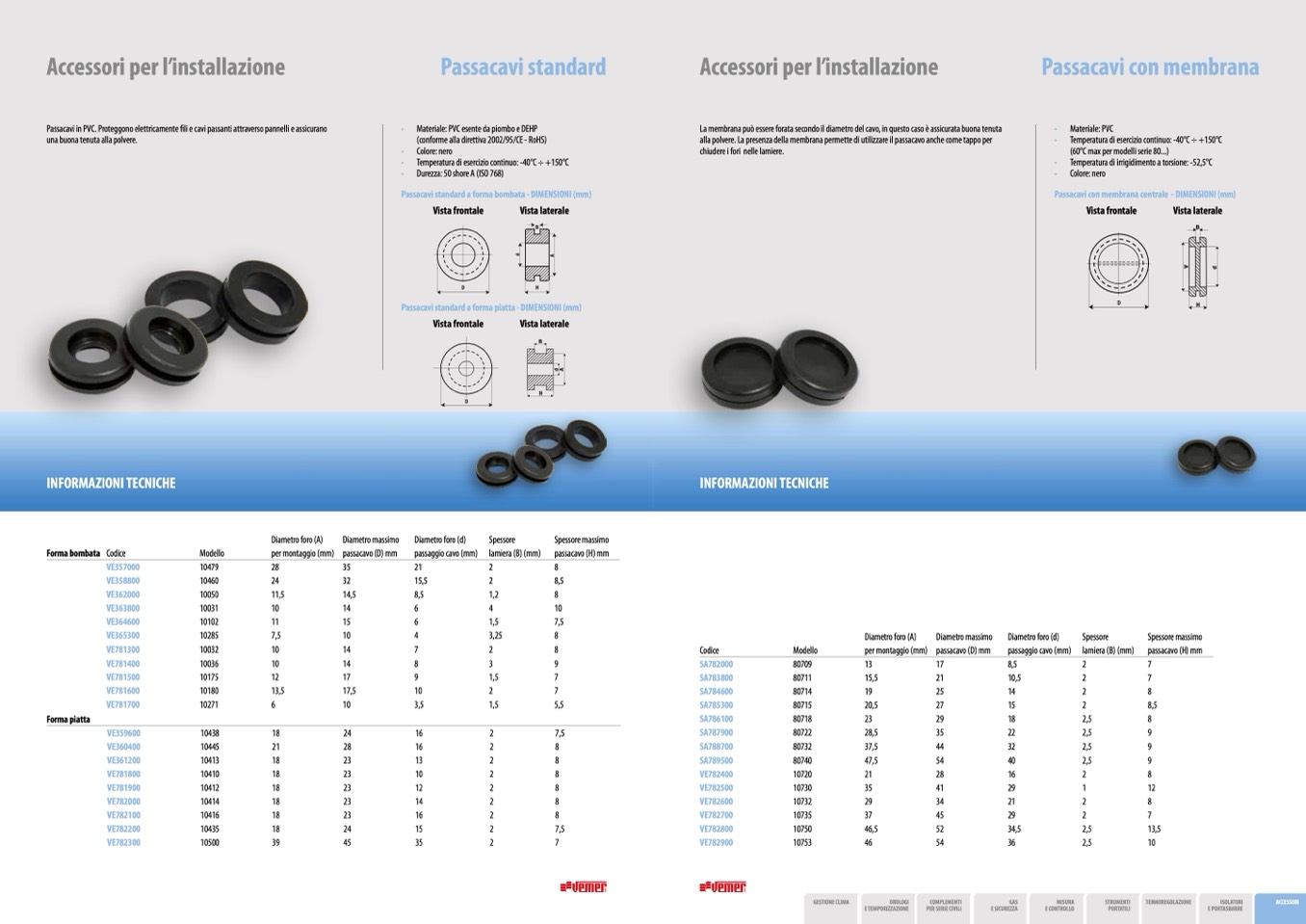 Passacavi in PVC. Proteggono elettricamente fili e cavi passanti attraverso pannelli e assicurano