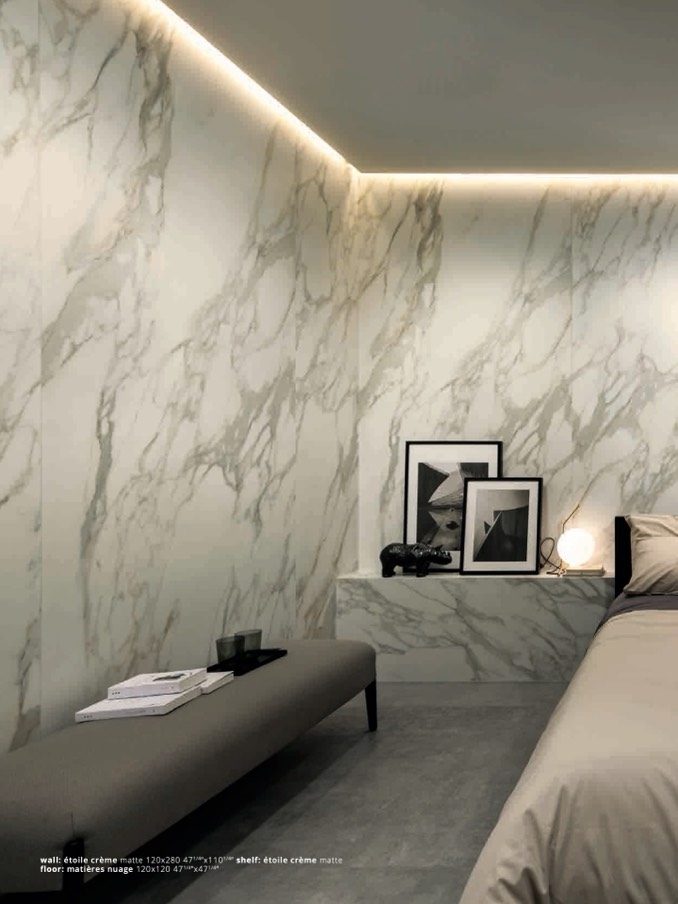 wall: étoile crème matte 120x280 471/4”x1101/4” shelf: étoile crème matte