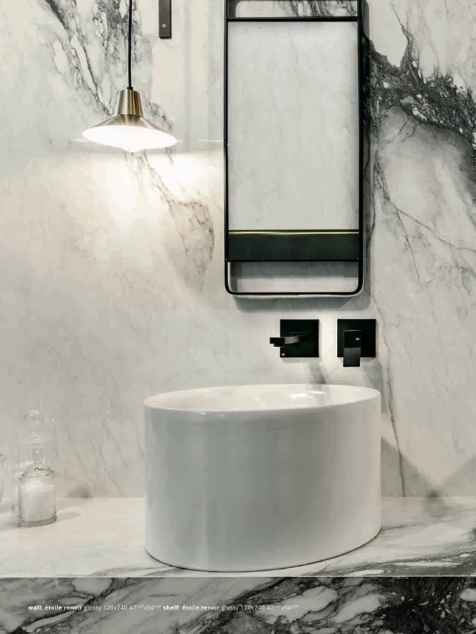 wall: étoile renoir glossy 120x240 471/2”x941/2” shelf: étoile renoir glossy 120x240 471/4”x941/2”