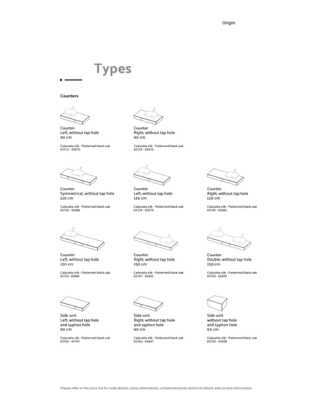 Please refer to the price list for code details, colour alternatives, complementaries, technical details and current information.