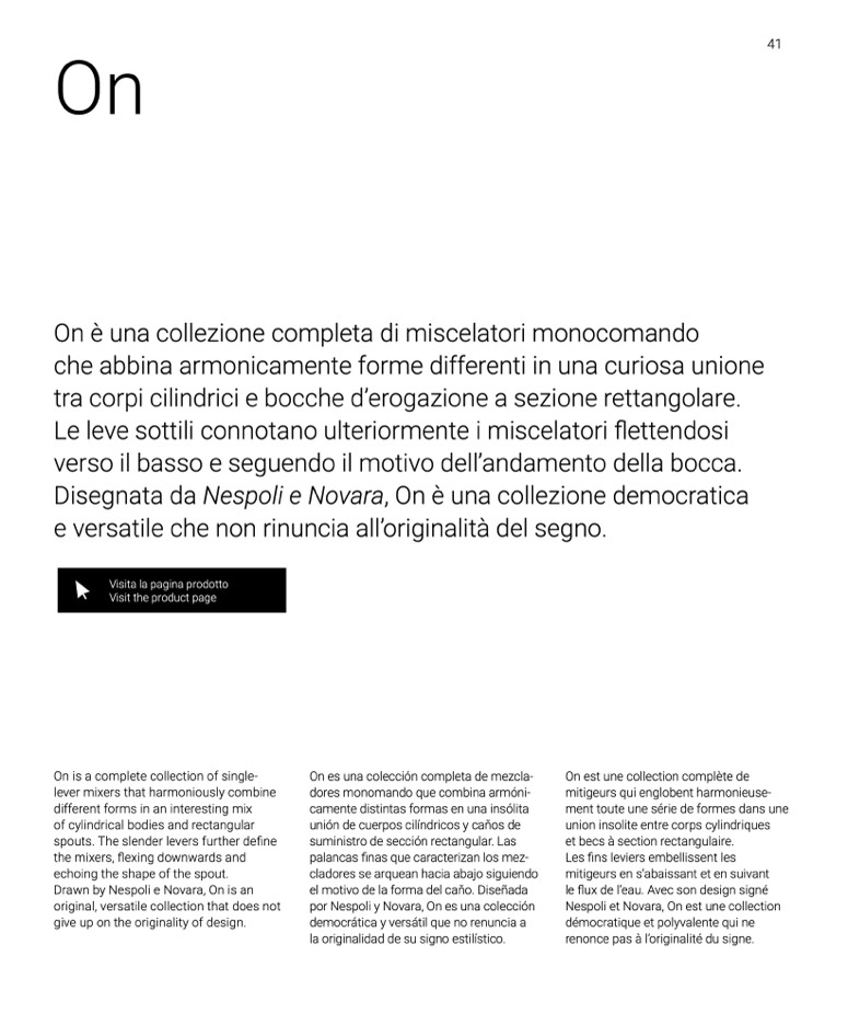 On è una collezione completa di miscelatori monocomando