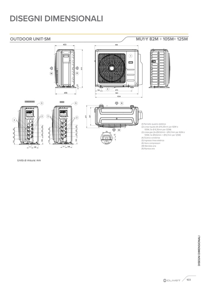 (3) Linea gas (3x Ø9,52mm + Ø12,7mm per 82M e