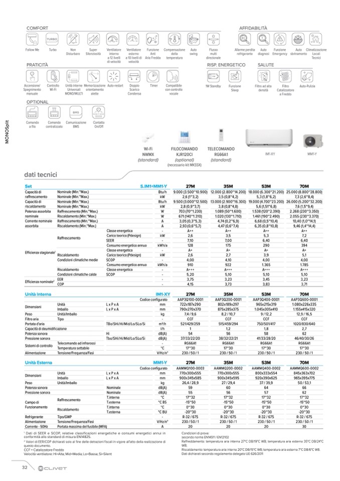 Dati di SEER e SCOP, relative classificazioni energetiche e consumi energetici annui in