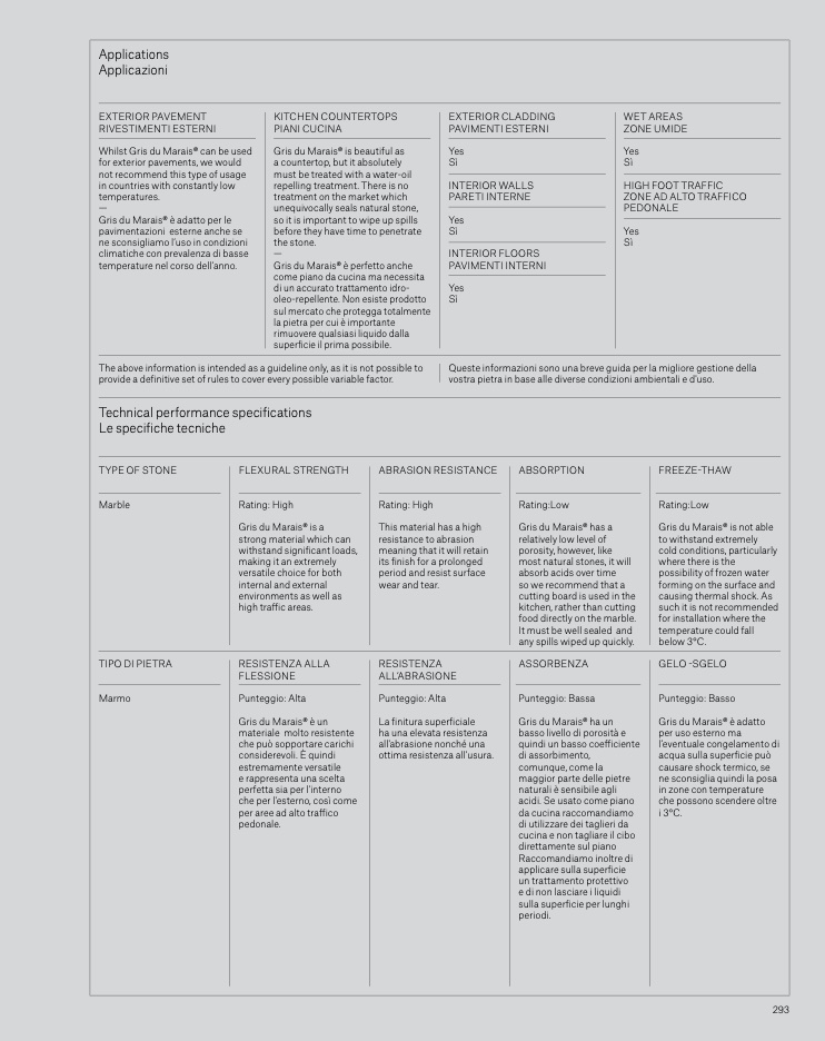 vostra pietra in base alle diverse condizioni ambientali e d'uso.