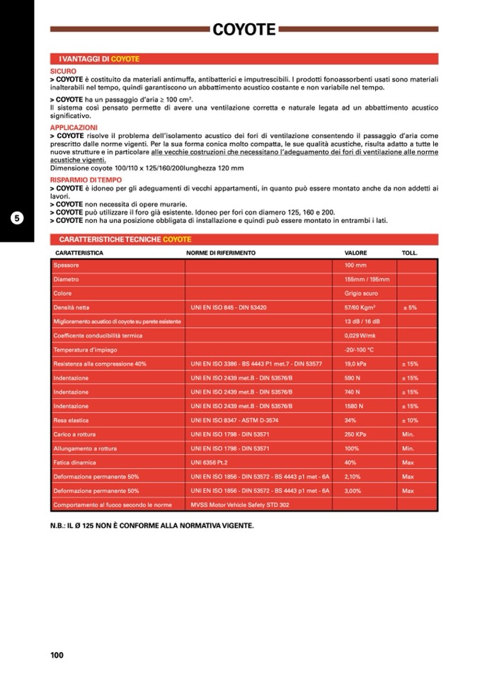 > COYOTE è costituito da materiali antimuffa, antibatterici e imputrescibili. I prodotti fonoassorbenti usati sono materiali