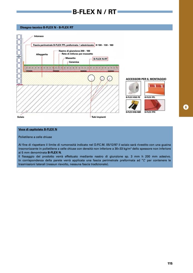 insonorizzante in polietilene a celle chiuse con densità non inferiore a 30÷33 kg/m