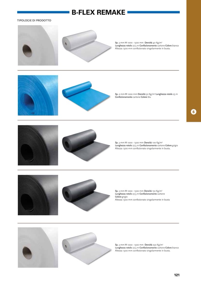Sp. 3 mm H 1000 - 1300 mm Densità 250 Kg/m