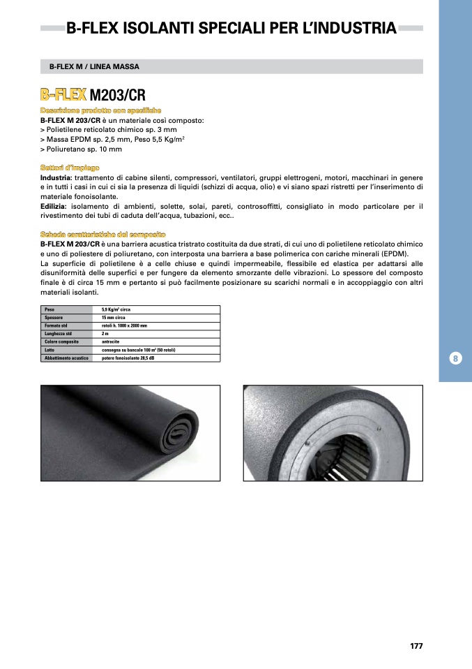 B-FLEX M 203/CR è una barriera acustica tristrato costituita da due strati, di cui uno di polietilene reticolato chimico