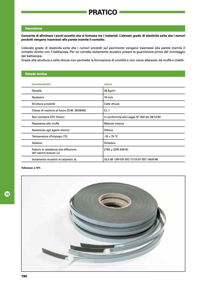Consente di eliminare i ponti acustici che si formano tra i materiali. L’elevato grado di elasticità evita che i rumori