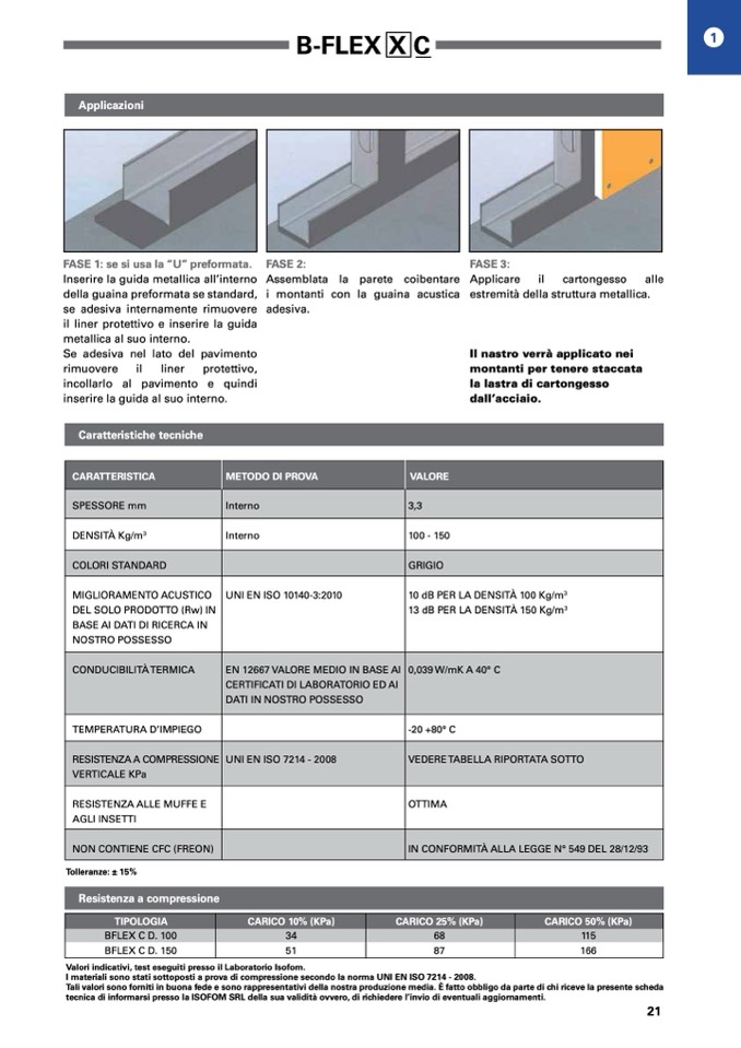 Valori indicativi, test eseguiti presso il Laboratorio Isofom.