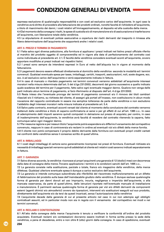 6.1 I costi degli imballaggi di cartone sono generalmente ricompresi nei prezzi di fornitura. Eventuali richieste e/o