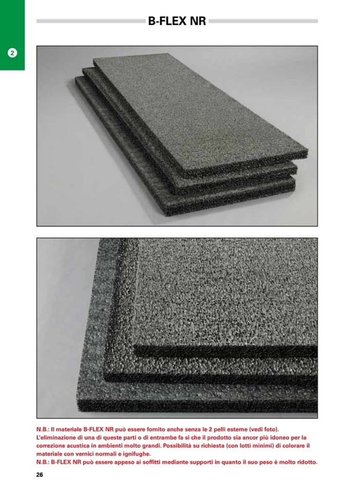 N.B.: Il materiale B-FLEX NR può essere fornito anche senza le 2 pelli esterne (vedi foto).