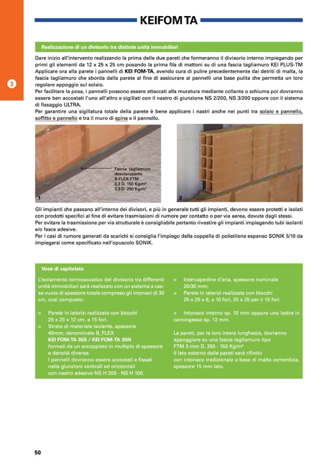 primi gli elementi da 12 x 25 x 25 cm posando la prima fila di mattoni su di una fascia tagliamuro KEI PLUS-TM