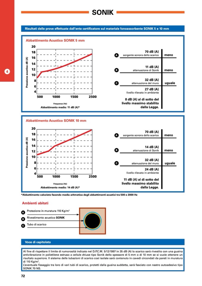 Risultati delle prove effettuate dall’ente certificatore sul materiale fonoassorbente SONIK 5 e 10 mm