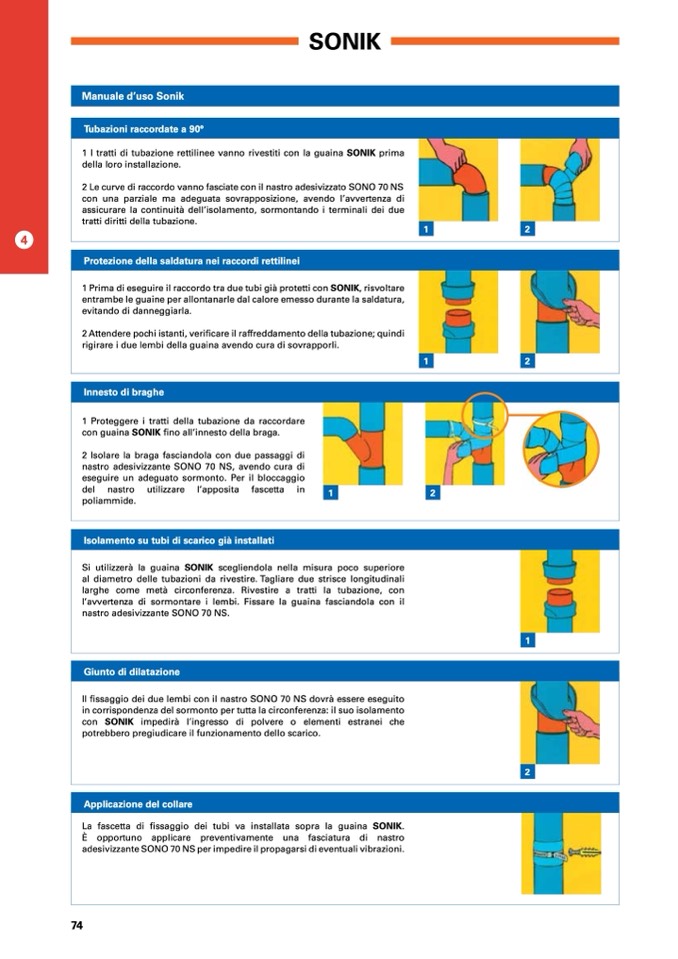 2 Le curve di raccordo vanno fasciate con il nastro adesivizzato SONO 70 NS