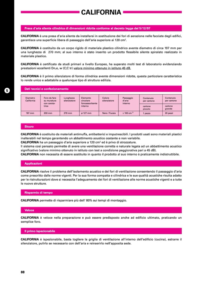 CALIFORNIA è una presa d’aria silente da installarsi in sostituzione dei fori di aerazione nelle facciate degli edifici,