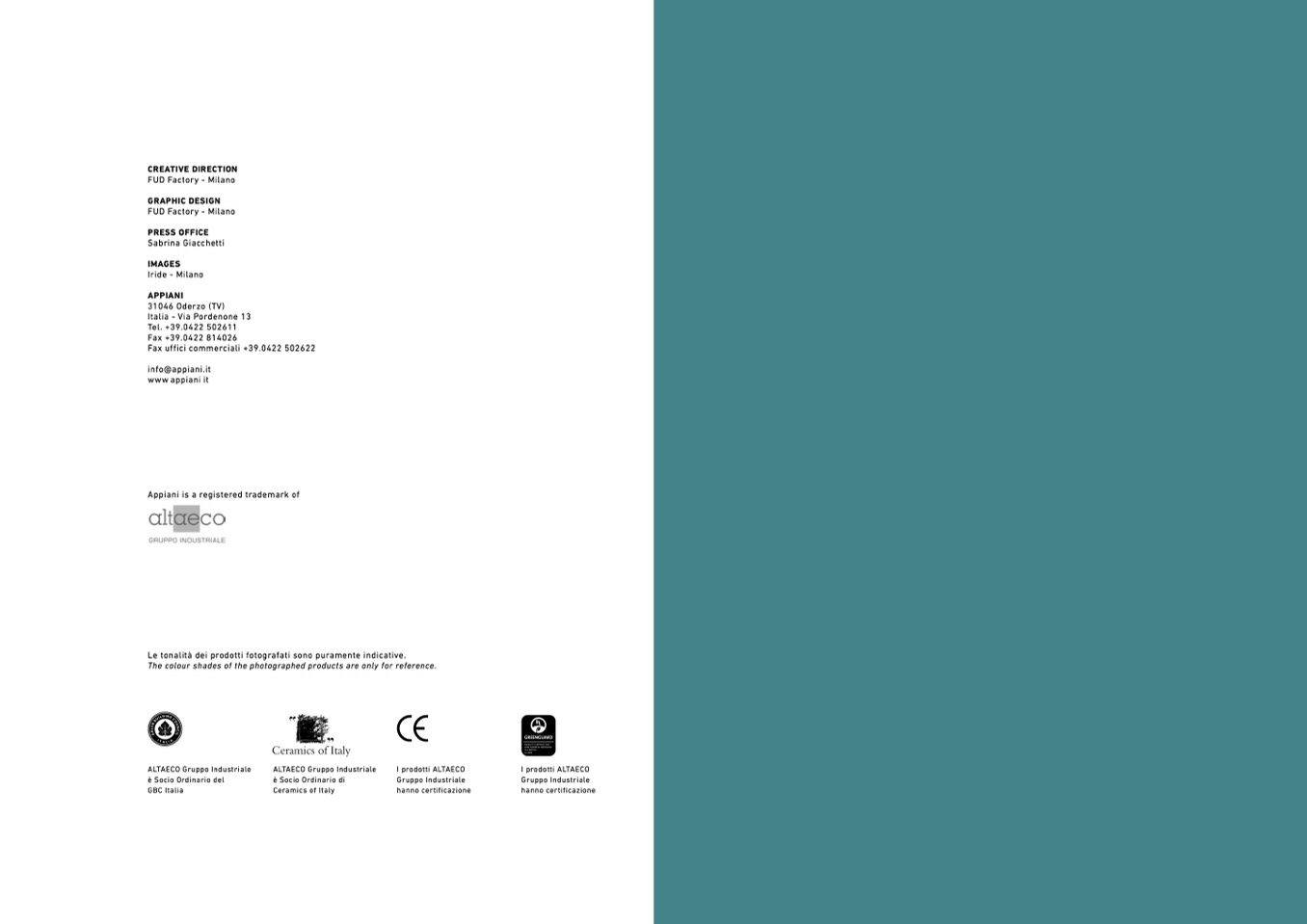 Le tonalità dei prodotti fotografati sono puramente indicative.