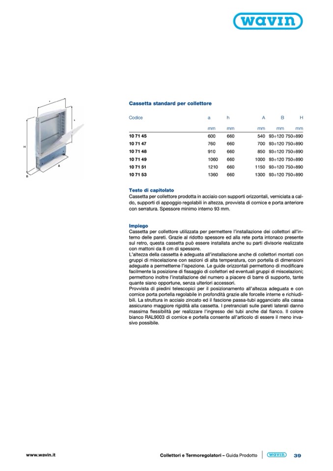 L’altezza della cassetta è adeguata all’installazione anche di collettori montati con
