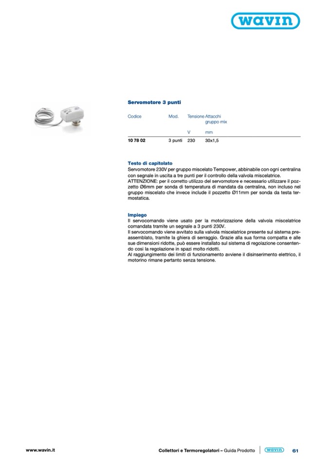 Servomotore 230V per gruppo miscelato Tempower, abbinabile con ogni centralina