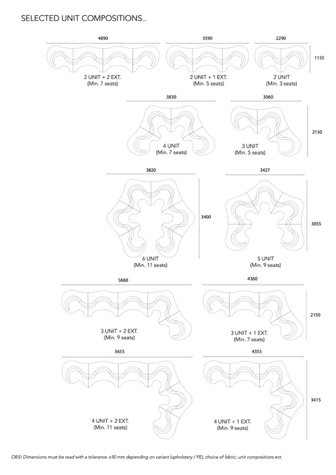 OBS! Dimensions must be read with a tolerance ±50 mm depending on variant (upholstery / PE), choice of fabric, unit compositions ect.
