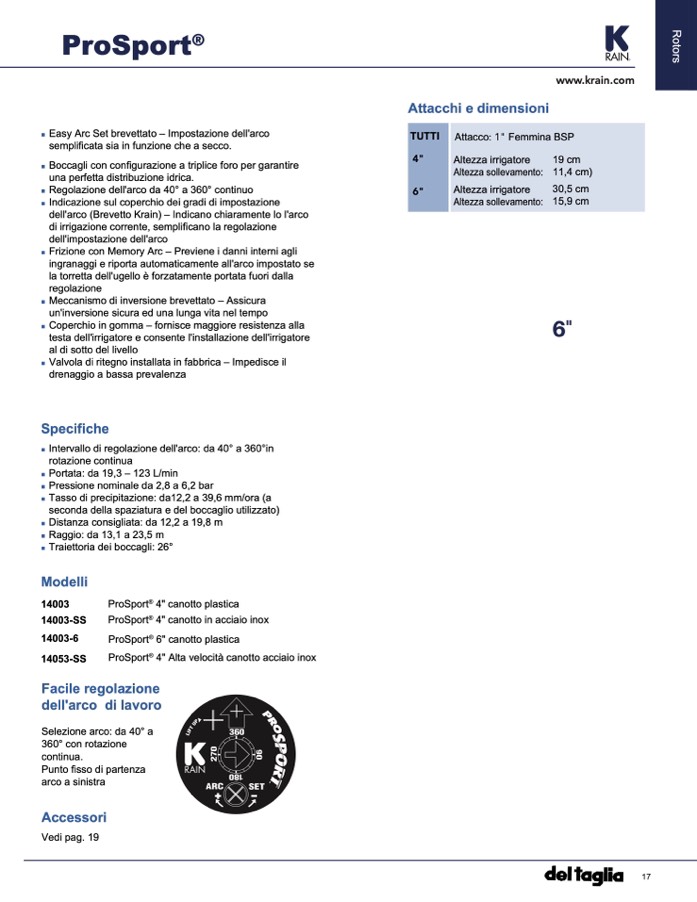 testa dell'irrigatore e consente l'installazione dell'irrigatore